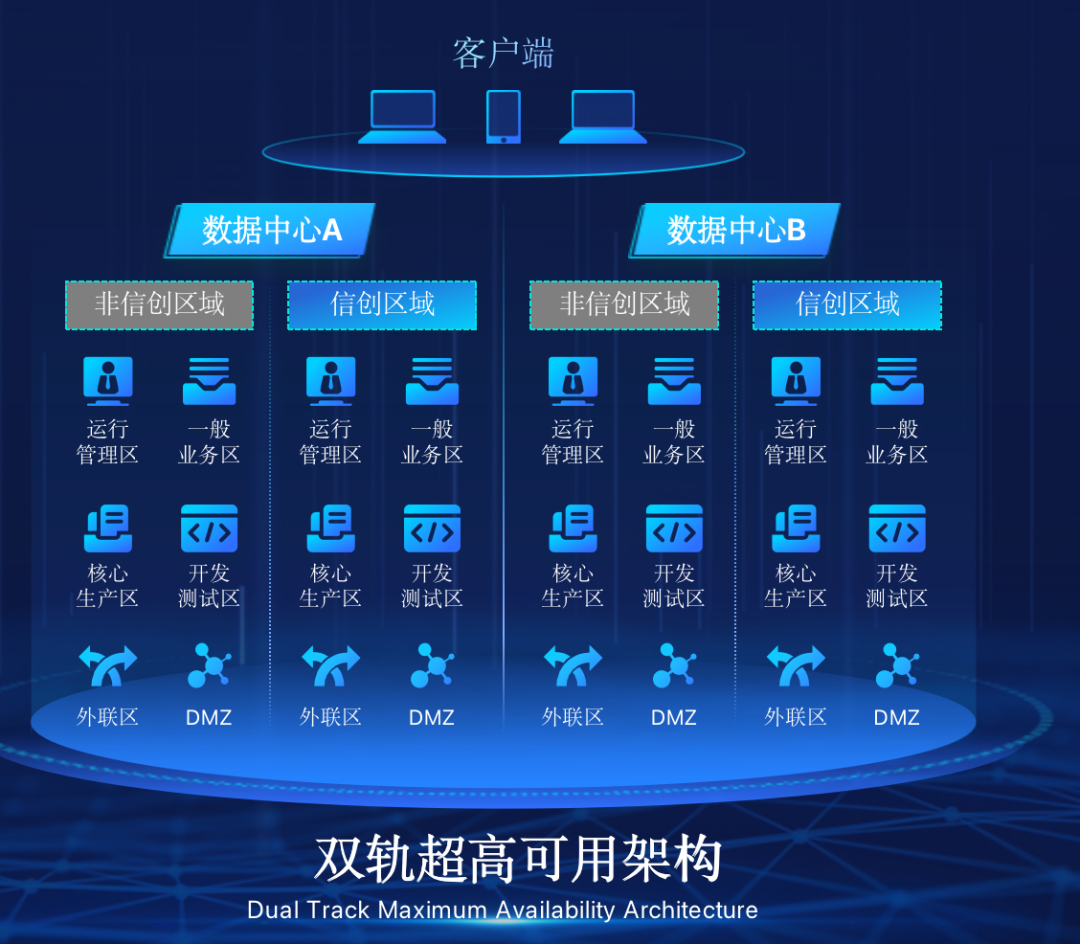 leyu.樂魚在企業(yè)面臨自主創(chuàng)新IT基礎重構(gòu)過程中,推出的全新架構(gòu)雙軌超高可用架構(gòu)(簡稱DTMAA),在雙活數(shù)據(jù)中心的分區(qū)調(diào)度基礎上,添加每個數(shù)據(jù)中心內(nèi)信創(chuàng)域和非信創(chuàng)域的分域調(diào)度,來實現(xiàn)分區(qū)分域協(xié)同的多活雙軌超高可用。