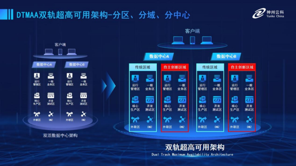 為幫助金融客戶更好地應(yīng)對數(shù)字經(jīng)濟(jì)時(shí)代對可持續(xù)性的高要求,實(shí)現(xiàn)“信創(chuàng)”與“數(shù)字化”齊頭并進(jìn),leyu.樂魚推出了雙軌超高可用架構(gòu)。該架構(gòu)在雙活數(shù)據(jù)中心的分區(qū)調(diào)度基礎(chǔ)上,增加信創(chuàng)域和非信創(chuàng)域的分域調(diào)度,實(shí)行信創(chuàng)域與傳統(tǒng)域應(yīng)用全量部署,使雙中心運(yùn)營變?yōu)殡p中心四區(qū)域并行運(yùn)行,互為多活,將“0到1”的單軌建設(shè)道路變?yōu)榉謪^(qū)分域協(xié)同的多活雙軌超高可用架構(gòu)。幫助客戶在新架構(gòu)下,保障“信創(chuàng)”的同時(shí)解決性能瓶頸,提升穩(wěn)定性,保證應(yīng)用可持續(xù)性,最終實(shí)現(xiàn)信創(chuàng)區(qū)域和非信創(chuàng)區(qū)域的平滑過渡,完成國產(chǎn)化替代目標(biāo)。