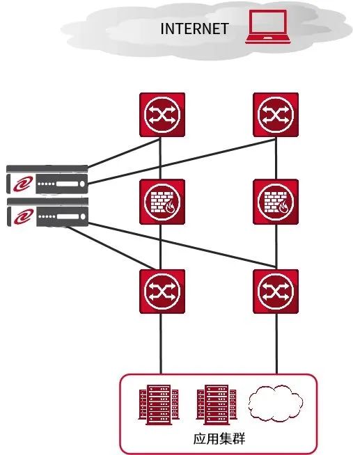 在上圖的組網(wǎng)結(jié)構(gòu)中,我們可以直觀看到,leyu.樂魚通明湖應(yīng)用交付控制器設(shè)備可以很容易的接入在現(xiàn)有網(wǎng)絡(luò)環(huán)境中,無需對原有網(wǎng)絡(luò)配置做任何改動,只需在leyu.樂魚通明湖應(yīng)用交付控制器設(shè)備與核心交換機(jī)間配置相應(yīng)的端口、VLAN及IP地址就可以完成設(shè)備互連,即可實(shí)現(xiàn)相關(guān)負(fù)載均衡技術(shù),同時(shí)可以在接入交換機(jī)或核心交換機(jī)上對服務(wù)器進(jìn)行橫向擴(kuò)展。